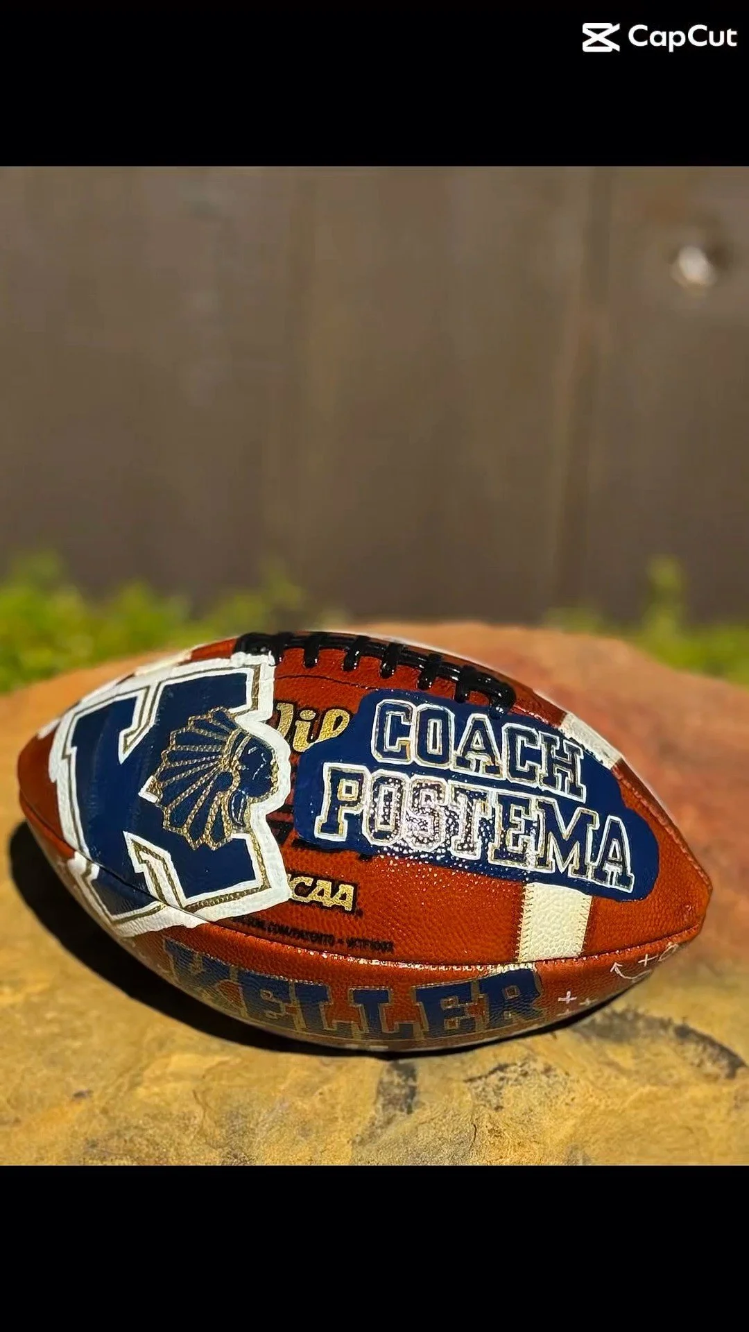 This one started as a blank football and ended up a bold tribute to Grapevine Mustang pride. ππ Watching the transformation in time-lapse makes it even sweeter—every detail painted by hand, no two alike.