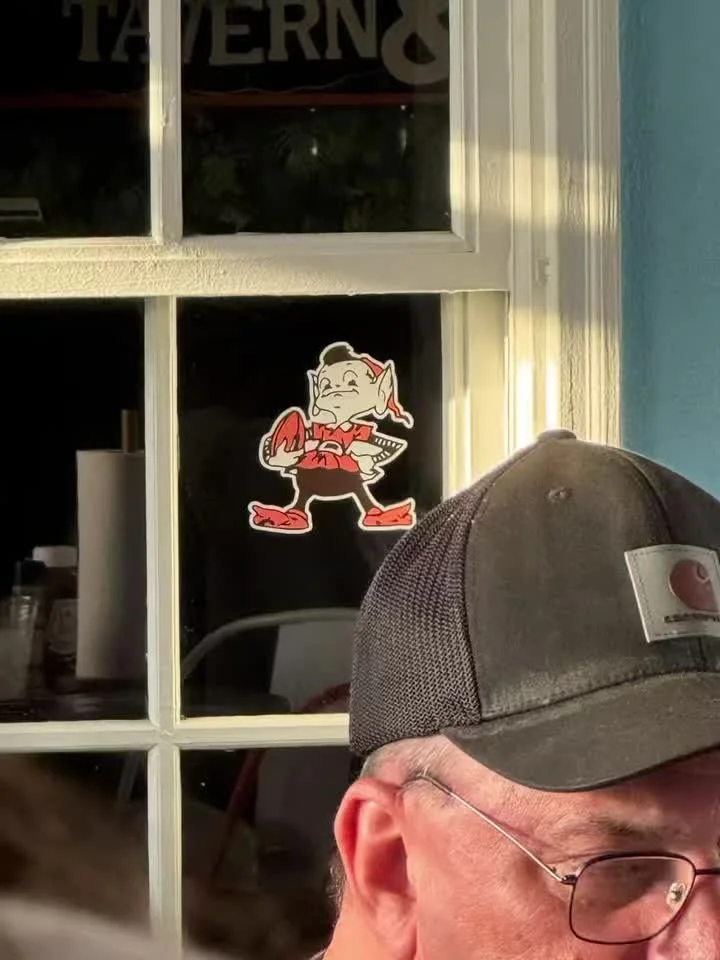 I’m in Naples, Florida celebrating a friend’s 60th birthday, fully committed to vacation mode, when I glance up at a bar window and spot a Cleveland Browns Sprite sticker.