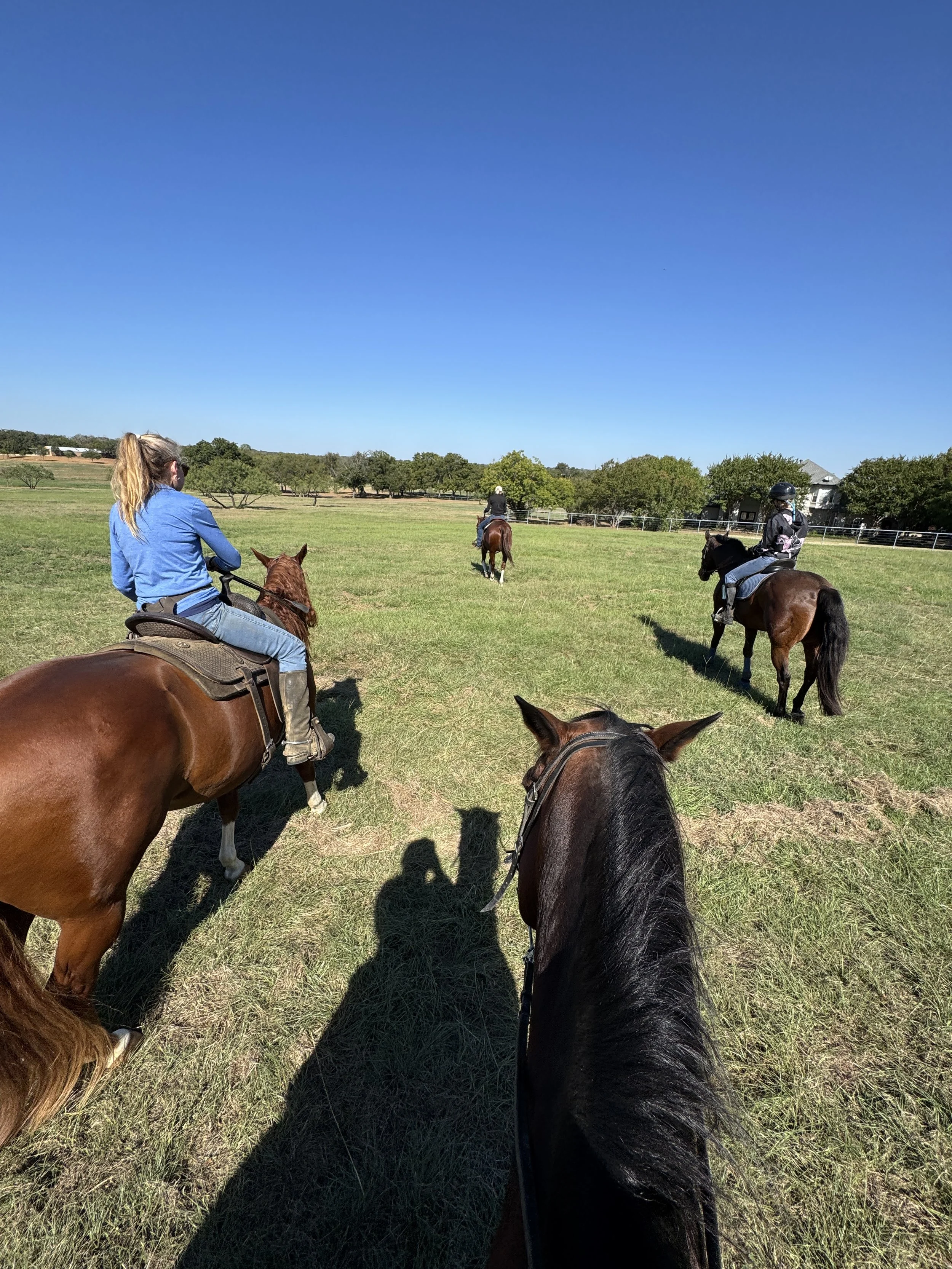 We’ve been exploring every inch of Equine Obsession with the best group of gals. Bee’s favorite spot? The back of the pack, where she can keep an eye on everyone.