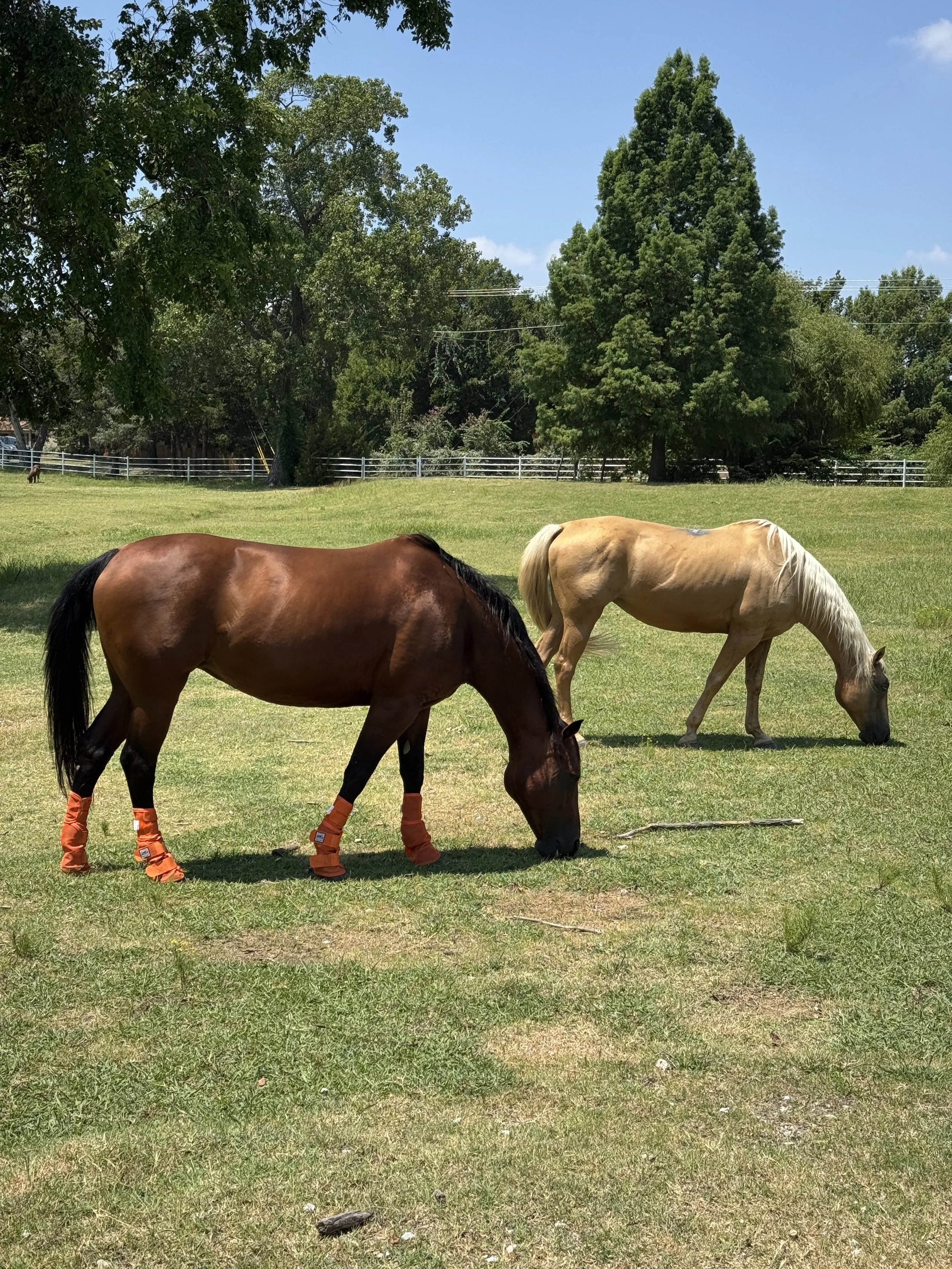 It’s still blazing hot here in Texas, which means we’ve been keeping our riding to a minimum. Our girl Bee, however, is looking pleasantly round — a big change from when we first brought her home and she’d dropped so much weight. Once the weather cools, we’ll ramp up her workouts. Until then, we’re sticking to the Rule of 130 — the combined temperature and humidity should be under 130 for safe riding. In August, that’s easier said than done!