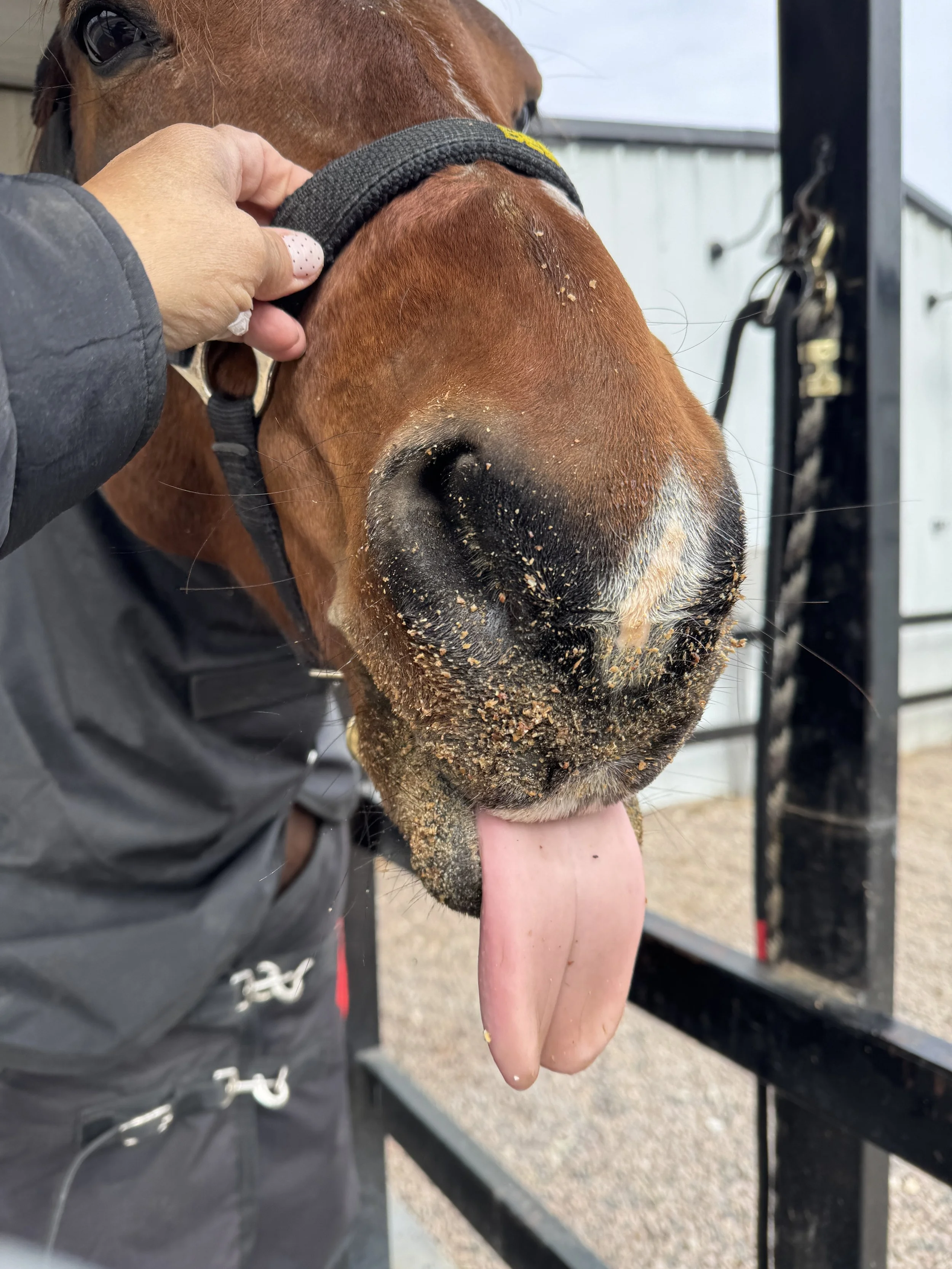 Before we get into the actual drama, I should mention that the week came with a guest. Mom brought along Mrs Kathrerine “Kitty” Skitt, her next-door neighbor, to observe my pedicure and have some equine therapy — I fully approved. Miss Kitty arrived with carrots, excellent grooming skills, and the correct attitude for a proper pre-farrier spa experience. She brushed me, groomed me, and made my Wednesday feel less like “maintenance appointment” and more like “luxury wellness retreat.” Highly recommend. Five stars. Would allow her back anytime.